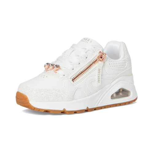 - Dazzle the playground choosing the Skechers KIDS Uno Gen1 310336L. This lace-up fashion sneaker features a durabuck upper with a zippered side closure and a crystal heart lace keeper, Skechers Air-Cooled Memory Foam cushioned comfort insole, and a Skech-Air visible airbag midsole.