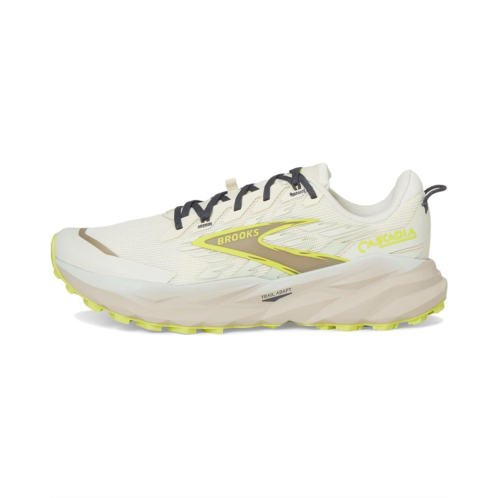 - Feel the confidence to explore any trail via a stable and adaptable ride wearing the Brooks Cascadia 19 Sneakers. These low-top shoes come with an Updated Trail Adapt System that utilizes a flexible and articulated Ballistic Rock Shield that integrates into a DNA LOFT v3 midsole for a stable and adaptable ride. TrailTack Green rubber outsole is made with 25% recycled content and offers all-terrain traction in wet and dry conditions, across varied terrain types. The round-toe shoes are also updated with more nitrogen infused DNA LOFT v3 in the heel (+2 mm) and forefoot (+4 mm), while its comfortable sandwich air mesh upper offers protection through 3D print overlays. The lace-up design ensures a secure fit and the ankle pull tab allows donning & doffing.