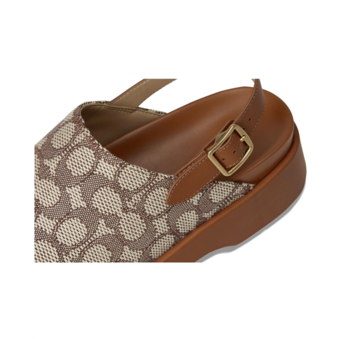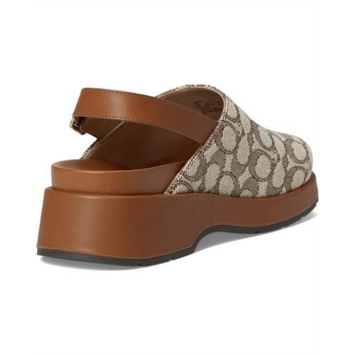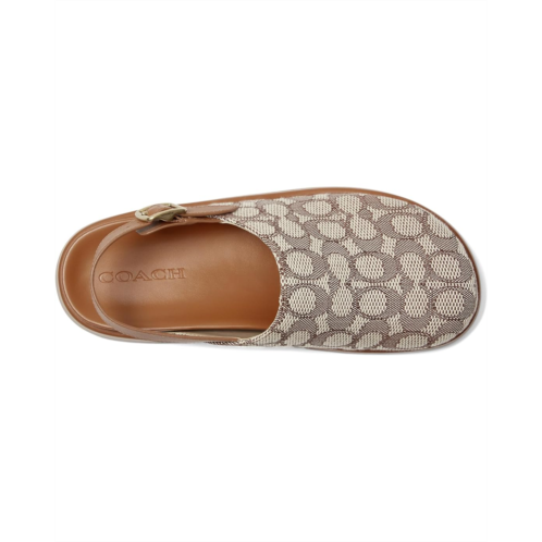 - The COACH Sculpted C Platform Clog In Signature Textile Jacquard is wrapped with embossed signature detailing and smooth leather accents. The adjustable slingback buckle ensures a secure fit. Designed for comfort and impact, it includes a padded footbed and durable rubber outsole.