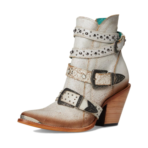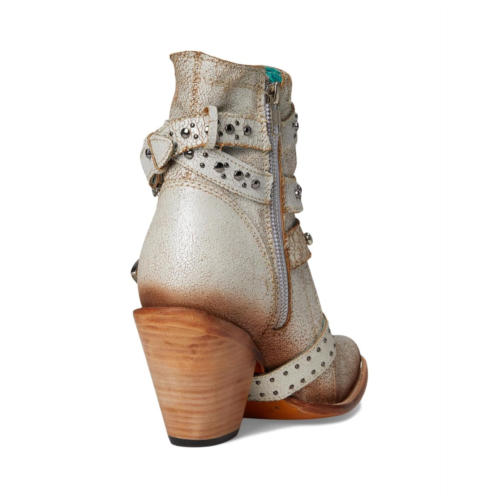 - The Corral Boots Z5311 are a striking blend of Western edge and modern flair. These ankle boots feature an almond toe, cowboy fashion heel, and bold harness and stud detailing that add rugged sophistication.
