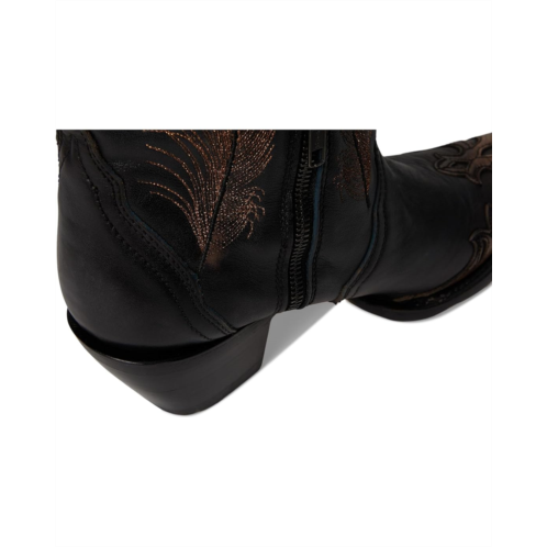 - The Corral Boots A4767 are designed with lady black-honey feathers embroidery, crackled overlay, and studs. These tall boots are made of a leather upper, insole, and lining. Their side pull handles and zippered side closure offer easy on and off. These knee-high heeled boots are the perfect choice to make your fashion statement.