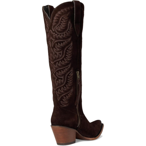 - Add a dash of style to your looks by pairing them with the Ariat Laramie Boots. The knee-high boots are crafted with a leather upper, faux leather lining, and comfortable foam insole. The side-zipper closure ensures a secure fit and the stacked block heel elevates the height. The curved top with pull strap makes it easy to wear the shoes, while the embroidered details on the shaft add an exquisite touch.