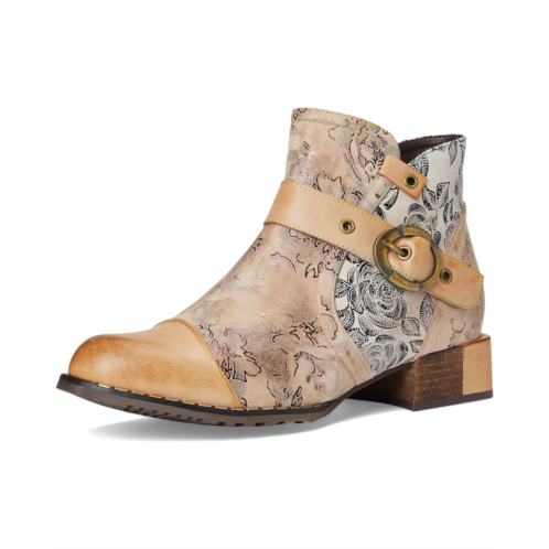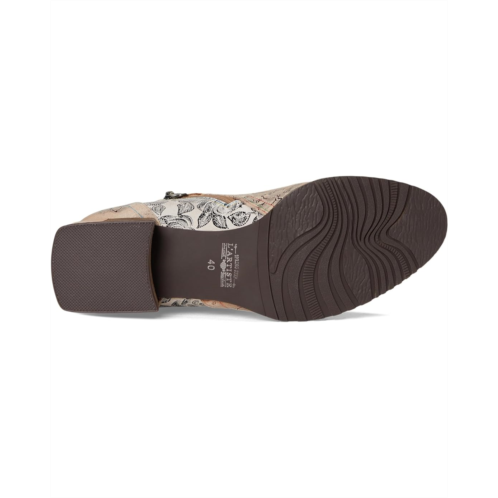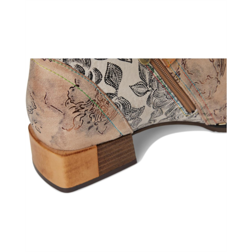- The L'Artiste by Spring Step Sipperb boot features intricate floral embossing, contrast stitching, and antiqued metal buttons that evoke a vintage charm. Color-blocked panels and a side zipper add visual intrigue, while the soft faux fur lining and insole ensure lasting comfort.