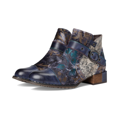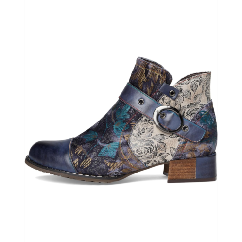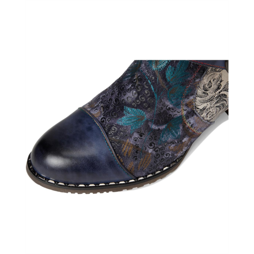 - The L'Artiste by Spring Step Sipperb boot features intricate floral embossing, contrast stitching, and antiqued metal buttons that evoke a vintage charm. Color-blocked panels and a side zipper add visual intrigue, while the soft faux fur lining and insole ensure lasting comfort.