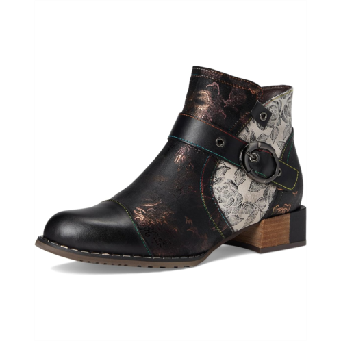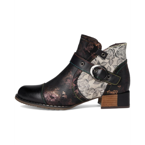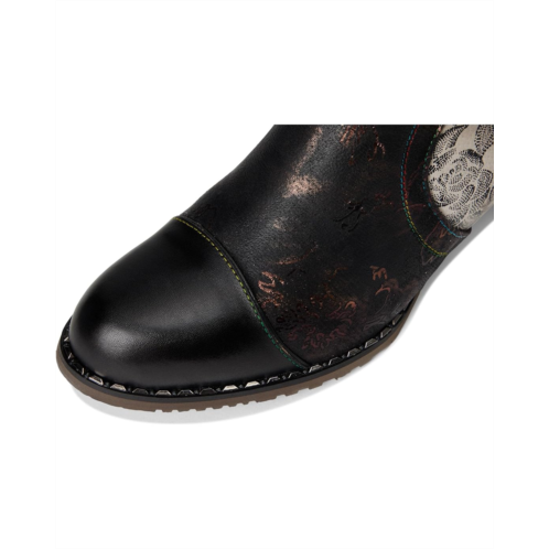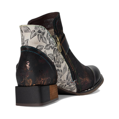 - The L'Artiste by Spring Step Sipperb boot features intricate floral embossing, contrast stitching, and antiqued metal buttons that evoke a vintage charm. Color-blocked panels and a side zipper add visual intrigue, while the soft faux fur lining and insole ensure lasting comfort.