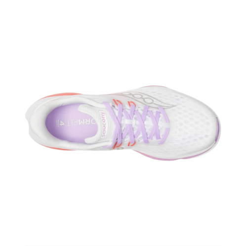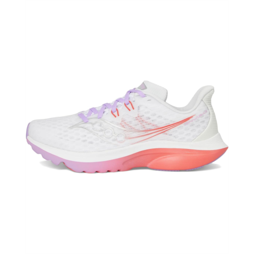 써코니 - Walk your way with ultimate comfort and a sporty style wearing the Saucony Kinvara 16, a trainer built for an ultralight, flexible and fast ride. Upgraded blend of PWRRUN, with more energy return and tougher construction against daily wear. The new geometry features a lower sidewall and straighter medial midfoot, designed for a smoother transition and added comfort as you pick up the pace. The EVA insole with new SRS sockliner offers step-in comfort you can't deny, while the breathable and lightweight upper mesh with a 3D molded heel cup offers a comfortable and secure heel fit. The lace-up closure ensures a secure fit on the go.