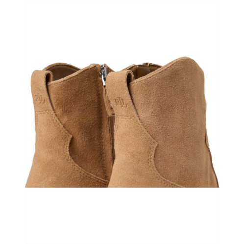 폴로 - The LAUREN Ralph Lauren Harpher Suede is a Western-inspired ankle boot crafted from velvety suede for a refined yet rugged look. It features an almond toe, tonal stitched detailing, and a stacked block heel that adds subtle elevation without sacrificing comfort. The bootie includes an inside zipper closure for easy wear, a buffed leather outsole, and a padded insole for added cushioning. A subtle 'LRL' debossed logo accents the back pull tab, blending branding with understated elegance.