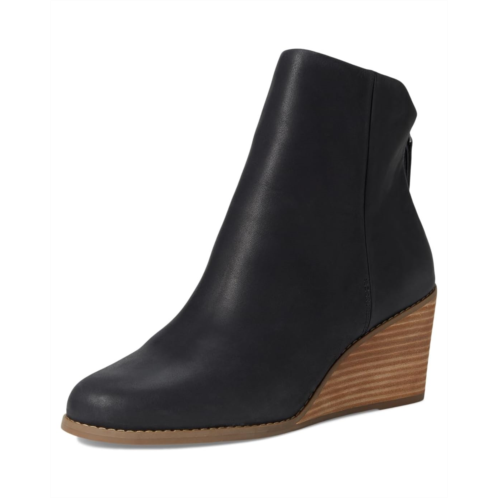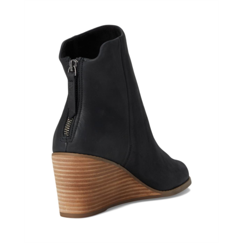 - The TOMS Casey is a minimalist wedge boot with back zipper closure and stacked leather-wrapped heel offering a refined flair. With a round toe design, the footwear features leather upper construction and ankle-high silhouette.