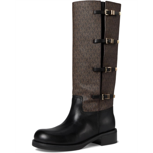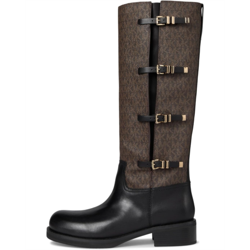 마이클코어스 - MICHAEL Michael Kors Darrington Boots: Moto-inspired boot that can be worn with the buckles done or undone for added edge to styling. These knee-high boots feature signature logo print leather upper, polyester lining, and faux leather insole for ultimate comfort. The stylish multiple buckle details on the side add a touch of edge, while the block heels provide stability and height.
