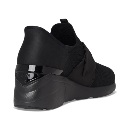 스케쳐스 - The SKECHERS A Wedge - Enzie Hands-Free Slip-Ins redefine effortless fashion with a bold, on-trend twist. These elevated beauties feature an engineered knit canvas upper topped with a flirty bow front accent, giving your everyday outfit that perfect fashion-forward edge. The built-in high-gloss heel clip not only adds modern shine but also supports the slip-on, hands-free design so you can step in and go-no bending, no fuss. The color-blocked midsole delivers sporty flair, while the wedge silhouette lifts your look (and your confidence). Inside, plush Memory Foam Lux insole cushioning and a soft polyester lining pamper your feet with every step. Anchored by a grippy rubber outsole, these sneakers combine height, comfort, and stand-out style.