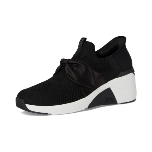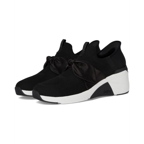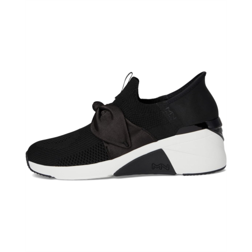 스케쳐스 - The SKECHERS A Wedge - Enzie Hands-Free Slip-Ins redefine effortless fashion with a bold, on-trend twist. These elevated beauties feature an engineered knit canvas upper topped with a flirty bow front accent, giving your everyday outfit that perfect fashion-forward edge. The built-in high-gloss heel clip not only adds modern shine but also supports the slip-on, hands-free design so you can step in and go-no bending, no fuss. The color-blocked midsole delivers sporty flair, while the wedge silhouette lifts your look (and your confidence). Inside, plush Memory Foam Lux insole cushioning and a soft polyester lining pamper your feet with every step. Anchored by a grippy rubber outsole, these sneakers combine height, comfort, and stand-out style.