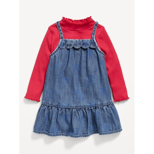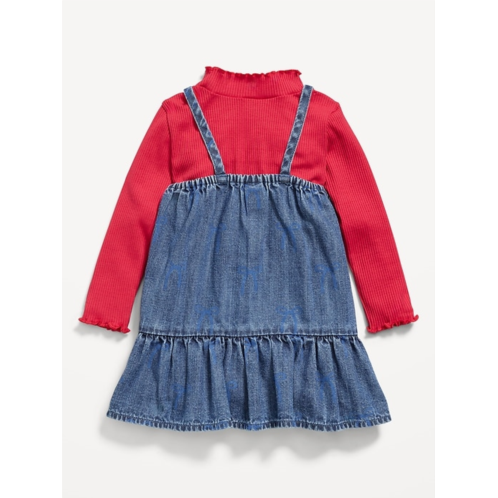 OldNavy Mock-Neck Ribbed T-Shirt and Tiered Chambray Dress Set for Baby