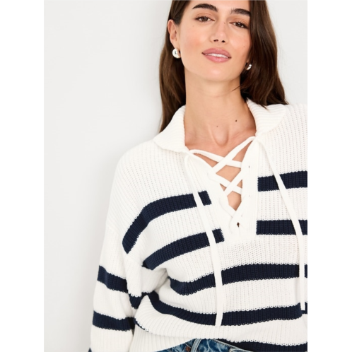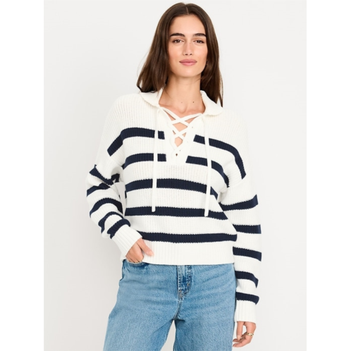 OldNavy Seaside Cotton Lace-Up Collar Sweater