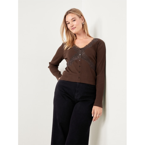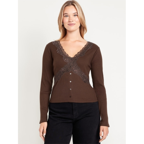 OldNavy Lace-Trim V-Neck Ribbed Top