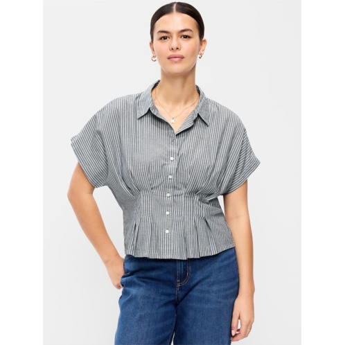 OldNavy Slim Short-Sleeve Cinched-Waist Button-Down Shirt