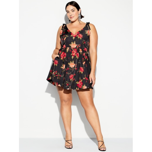 - fitted at top with a flared mini skirt