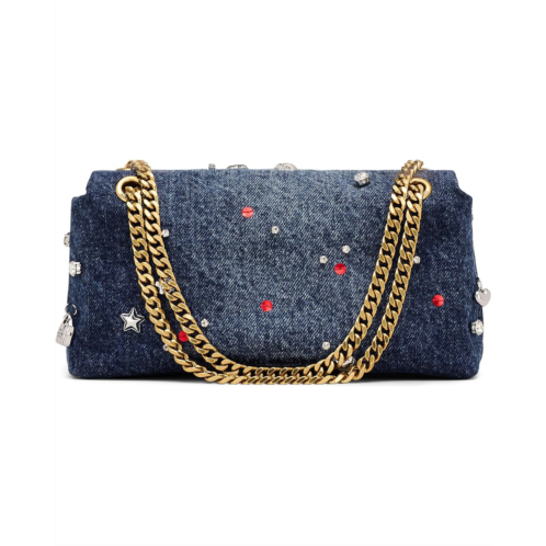 마크제이콥스 - Small in size but big in personality, the Marc Jacobs The Trinket Charm Denim Dual Chain Mini Bag blends playful flair with refined design. Crafted in cotton denim, this chic mini features sequin-daisy or similar 'trinket' embellishments for a fun textural pop. Dual chain straps allow you to wear it crossbody or over the shoulder. The flap front is secured by the signature J turn-lock hardware.