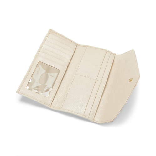 - Shine bright by carrying the compact and functional Brahmin Veronica Travel Wallet which features a radiating metallic gleam. Featuring an envelopekorea design, it has a snap closure with interior zippered pocket, ID window, bill slot, and ten credit card slots.