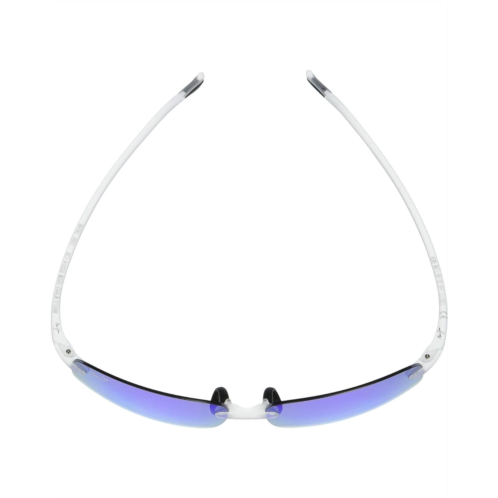 - Rimless sunglasses with lightweight nylon frames, single bridge, non-slip and minimal temple and nose pads, and traditional hinges.
