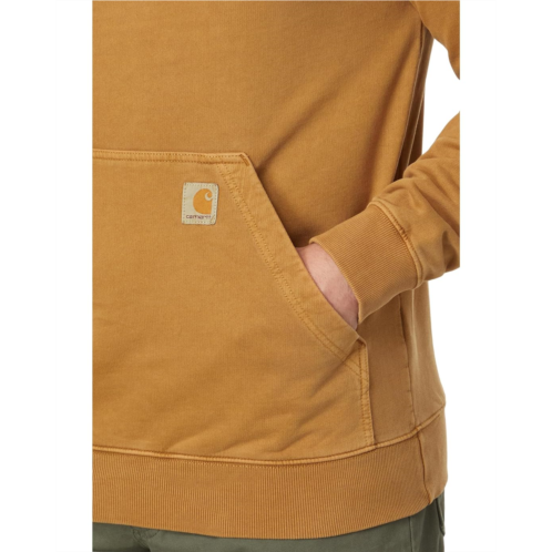 칼하트 - A workday staple, the Carhartt Relaxed Fit Midweight French Terry Graphic Sweatshirt is equally comfortable on the weekend. The midweight cotton fabric of the sweatshirt feels soft against the skin. A relaxed fit means you have a little extra room to move. This cotton sweatshirt comes with spandex-reinforced rib-knit cuffs and a waistband for a snug fit. The long sleeves, attached three-piece hood with drawcord closure, and straight hem offer added comfort and style. This hooded sweatshirt is garment dyed for a worn-in look.