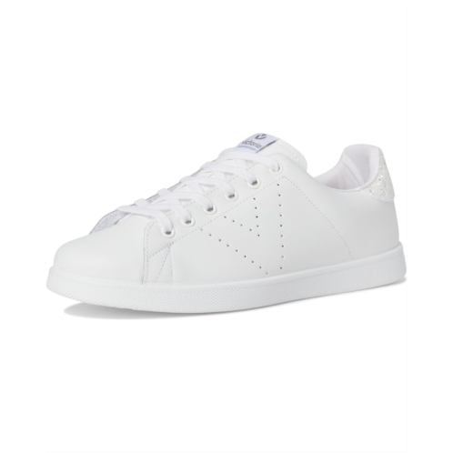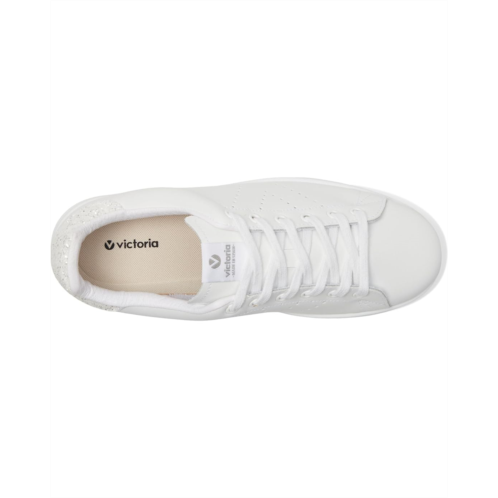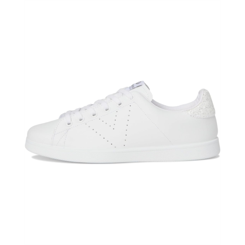 Sleek and sporty, the victoria Tenis Leather & Glitter Sneakers amp up your style game and offer next-level comfort. The low-top sneakers feature a leather upper with a rounded toe shape, cotton lining, and a cotton-covered comfort foam insole. The style comes with a classic V detail on the side panel and the organic cotton laces ensures easy adjustability.