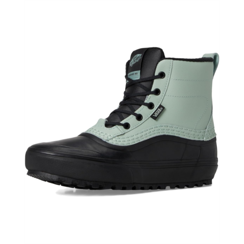 Give cozy comfort to your feet wearing the Vans Mte Standard Mid Waterproof Boots. The waterproof vulcanized and seam-sealed construction keeps snow and wet out. A lightweight and resilient stretch material has been added to the opening of the boot to allow ease of movement and easy on-and-off. The mid-top boots comes with a canvas upper with a lace-up design, cotton lining, and a rubber insole.