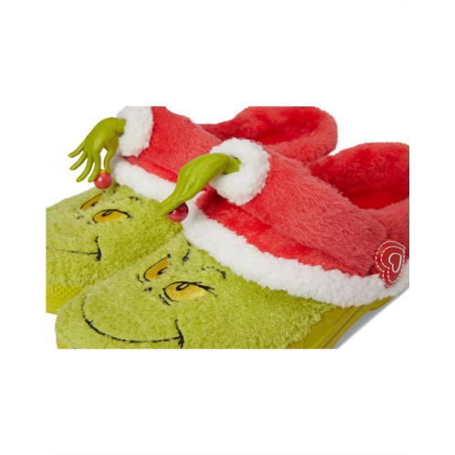 Mr. Grinch may be a mean one, but these Classic Lined Clogs are delightful and comfortable for the holiday season in Who-ville. Each pair is lined inside and out with a soft fuzz that will make your heart grow at least three sizes. Grinch's mischievous face is featured on the upper while his iconic hand dangles from the heel strap holding an ornament. Slip into a pair of these cozy clogs to discover the true meaning of Christmas.