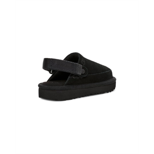 Clogs might be the shoe of the moment, but this one has the comfort your kids love from the UGG Kids Toddler Goldenstar Clogs with a suede upper and a foam footbed. These clogs come with an adjustable heel strap and hook-and-loop closure so the fit is just right for all-day play. The 100% recycled polyester lining keeps your kid's feet cool and comfortable. These clogs feature a TPU strap end with a graphic UGG font for added style. Make sure your kid experiences all-day comfort and support wearing these slide clogs.