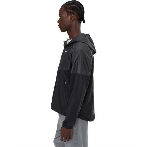 This winterized running jacket has it all for unpredictable weather. Its mixed material design pairs durable woven with soft peached paneling to help shield you from the wind and rain.