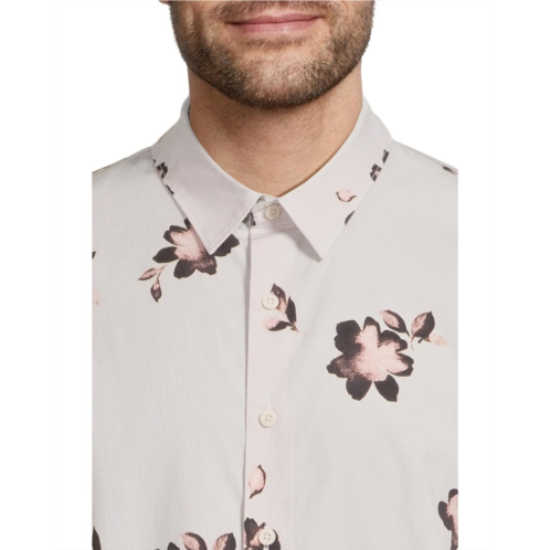 Amp up your casual or semi-casual style wearing Vince Cascading Floral Short Sleeve Shirt. The breezy cotton-blend shirt features a collared neck, a full center-front button closure, short sleeves, and a standard-length silhouette with a straight hem. It is patterned with a cascading floral print for a warm-weather statement and an easy drape detail.