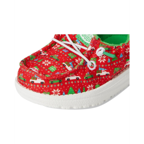 Dress up your junior in the holiday season with the cute Hey Dude Kids Lildude Holiday Sweater Loafers. Designed with an allover Christmas printed canvas upper, cotton lining, EVA insole, and EVA outsole, these slip-on style loafers with lace-up details ensure both comfort and durability.