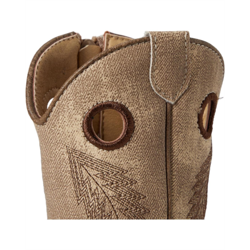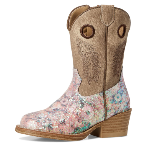 Style up your little ones look with the Roper Kids Willow Glitter Boots. These pretty boots come with a faux leather upper with a multi brown floral glitter vamp, vintage brown denim shaft, western feather stitch design, and a flexible TPR outsole with cowboy heel. The curved top with pull hokes allow easy pull on/off and the EVA insole with padded sock ensures added comfort.