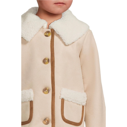 Keep her on-trend this chilly weather season in the Janie and Jack Bonded Sherpa Coat. With contrasting trim, this coat offers a convertible collar, long sleeves and patch hand pockets. A seasonal staple!