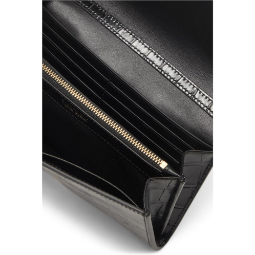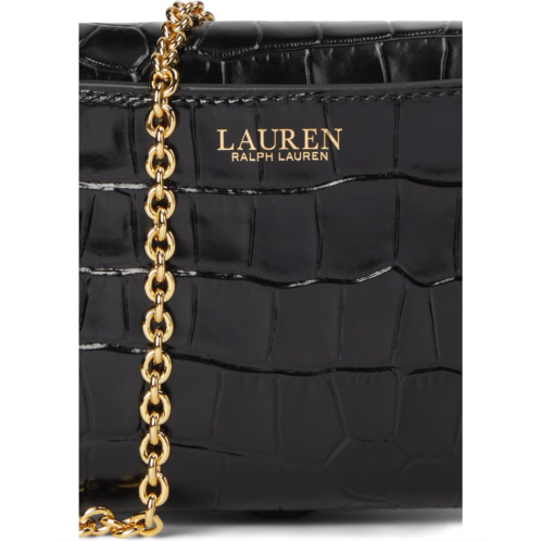 Crafted with metallic crocodile-embossed leather and finished with a modern chain strap, the Lauren Ralph Lauren Croc-embossed Medium Adair Crossbody combines the convenience of a crossbody bag with the essential storage of a wallet thanks to its compact silhouette and array of pockets. An oval-shaped LRL logo at the front provides a signature finish. This crossbody purse is designed with a magnetic snap closure and removable brass-finished chain crossbody strap.