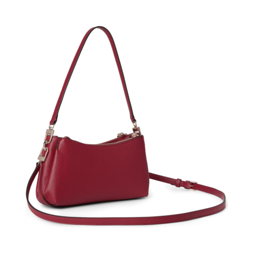 The GUESS Noelle Ii 3 Compartment Crossbody in eco saffiano polyurethane is designed with a detachable crossbody strap and a top strap for versatile styling options. This crossbody purse has three zippered compartments and three interior card slots that offer enough space for your essentials. Styled with shiny gold hardware, this shoulder purse is perfect to pair with dresses, casual outfits, and formal looks.