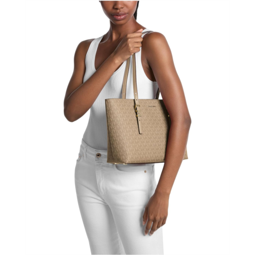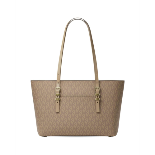 Maintain your chic style while keeping your essentials organized in the MICHAEL Michael Kors Quinn Md Ew Tz Tote. Crafted from polyvinyl chloride, this tote features a top zipper closure with adjustable shoulder straps and three interior slip pockets.