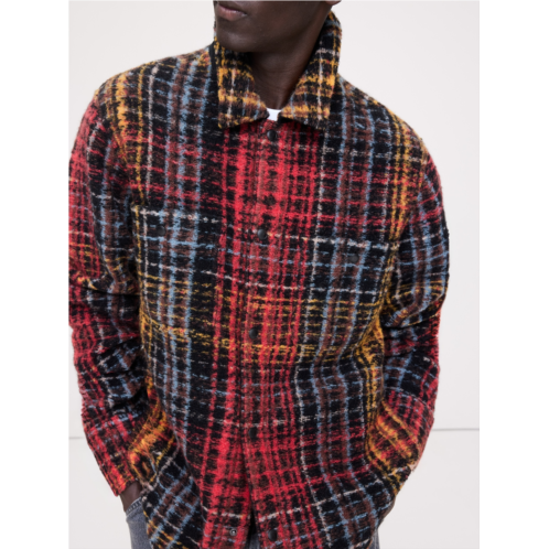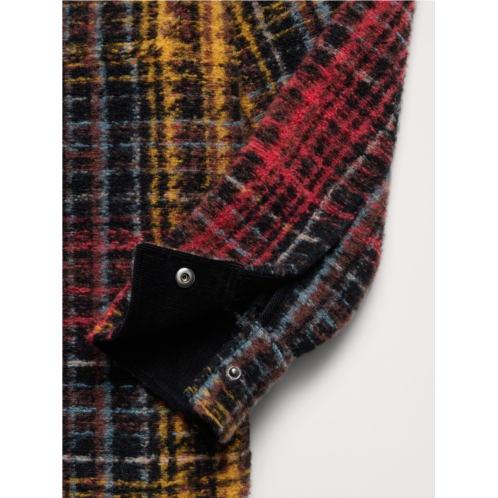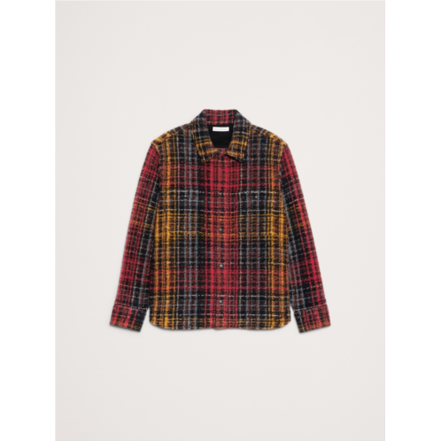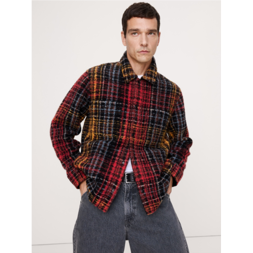 - So soft, so warm, this unique shirt jacket has a plaid pattern with a uniquely textured boucle finish. We left the inside unlined so it's easy to layer throughout the seasons.
