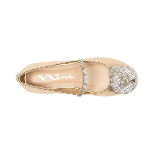- Delicate, dazzling, and effortlessly sweet - IZZY by Nina Kids is a dream-worthy ballet flat designed for magical moments. With sparkling crystal accents and a charming flower embellishment, this style brings a touch of fairy-tale beauty to every step. The elasticized strap ensures a snug, easy fit, while the round toe design, cushioned memory foam insole, and non-slip outsole offer comfort and confidence all day long. Whether she's twirling at a party or dressing up for a special occasion, IZZY adds the perfect finishing touch.