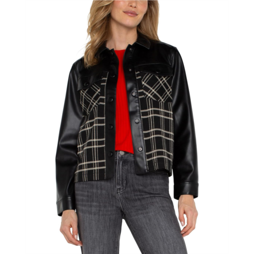 Liverpool Los Angeles Shirt Jacket with Blocking Windowpane Plaid Knit