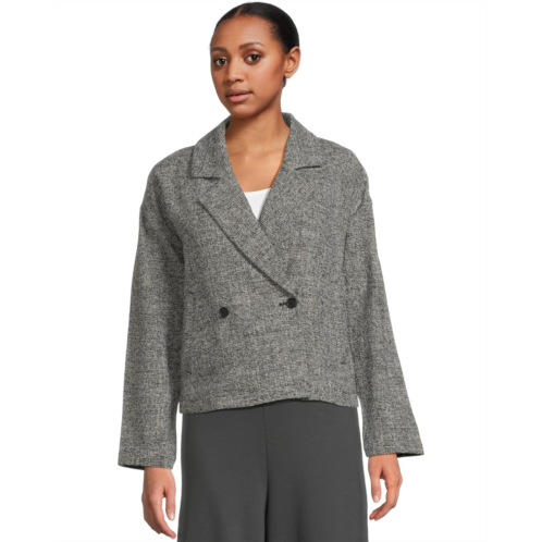 Polished, modern, effortless - Redefine your wardrobe staples wearing EILEEN FISHER Short Blazer. Featuring a sleek notch lapel collar, long sleeves, and a versatile button-front closure, this blazer seamlessly transitions from office hours to after-hours. Hand pockets add a practical touch, while the subtly textured fabric-woven with two colors of yarn for a unique speckled effect-offers understated sophistication.