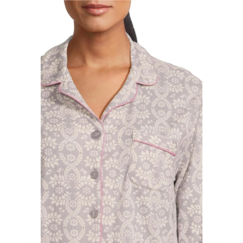 The Karen Neuburger Novelty Long Sleeve Girlfriend Pajama Set includes a long-sleeve top and matching pants, both adorned with charming print patterns that add personality to your downtime. The girlfriend fit offers a relaxed silhouette with feminine shaping, while features like a notch collar, button-front closure, and drawstring adjustable elasticized waistband ensure easy wearability.