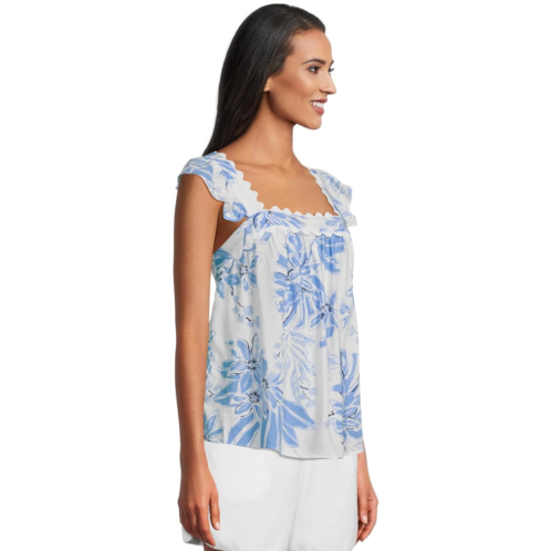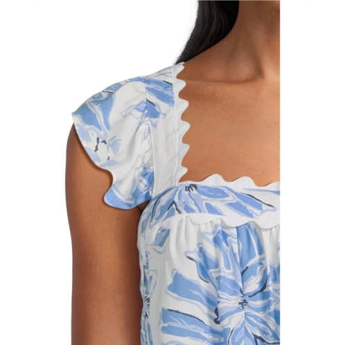 The Lilly Pulitzer Gyah Sleeveless Top is an easy-fit top with ruffle straps and rickrack detail at the straps and bust. Made from rayon fabric that offers superior comfort and breathability, this stylish top features an allover floral print. It is styled with short ruffle sleeves, a square neckline, and a straight hem. Add a fun, colorful twist to your everyday looks with this printed top.