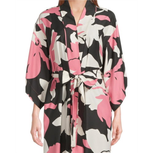 Step into the luxurious blend of comfort wearing Natori Niwashi Robe, which comes in fancy appearance of satin. The open-front robe features a self-tie belt, long loose sleeves, an allover floral print, and a calf-length silhouette.