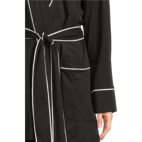 The Skin Carlotta Robe is made from organic cotton fabric that takes your comfort to the next level. It features an open front design with a tie waist closure for easy wear. This cotton robe is styled with long sleeves, a collared neckline, and a straight hem. Offering a non-sheer silky touch, this open-front robe has a contrast piping detail for an eye-catching appeal.