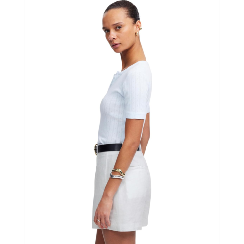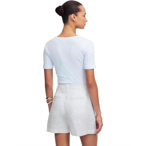 Give your style statement a chic update wearing Madewell Pintuck High Waist Linen Shorts - Maldive Shorts. The pull-on style shorts feature a high-rise waist with belt loops, a zip-fly & button closure, a pleated front design, a five-pocket design, and a short-length silhouette.