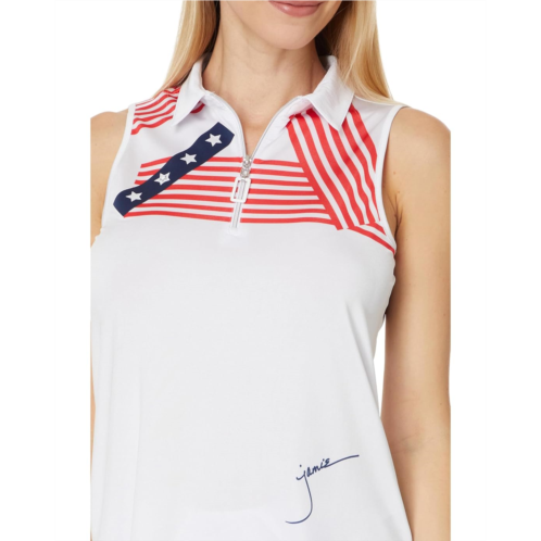 Look absolutely fab in your sporty-chic style wearing the Jamie Sadock Crossings Sleeveless Top. It features a spread collar with half-zippered front placket, printed upper body, and rounded hem.