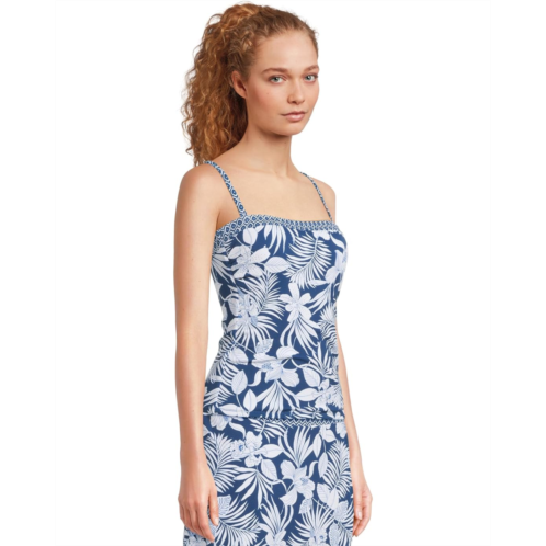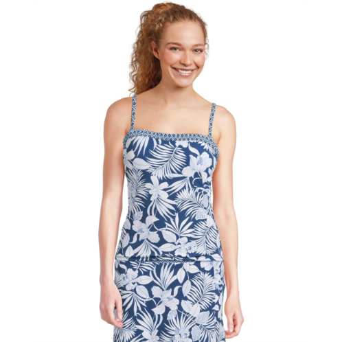 Feel confident and chic with this elegant Tommy Bahama Island Cays Blooms Bandini. With its molded bandeau cups providing support and shape, the top features a removable strap for versatile wear and a gold V-wire detail. It has a tummy control panel for a flattering fit, making it perfect for beach or poolside outings.
