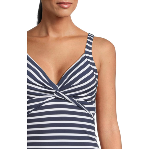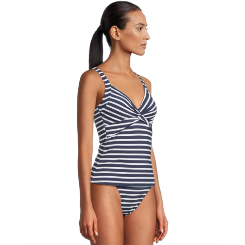 Flaunt your chic style poolside in the Tommy Bahama Coastline Stripe Underwire Tankini. Featuring a V-neckline with a twist front, adjustable shoulder straps, targeted front panel compression for tummy control, and a straight hemline.