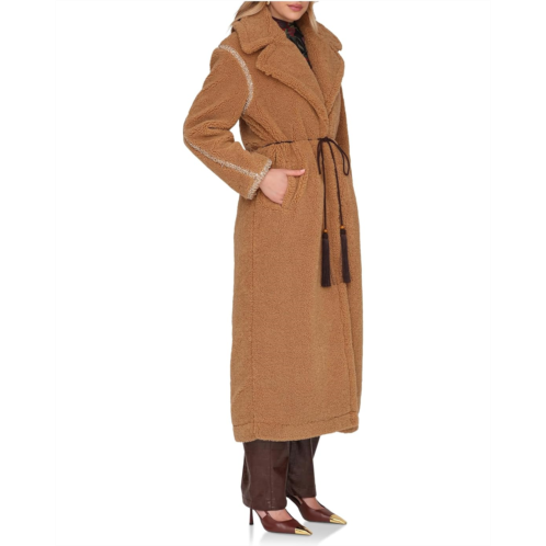 Embrace the art of elevated simplicity wearing Avec Les Filles Oversized Belted Coat. Crafted with a classic spread collar neck and long sleeves, this coat offers a refined yet relaxed silhouette perfect for modern layering. The open front design with a hidden hook-and-eye closure creates a seamless, polished look, while the self-tie belt cinches the waist for a flattering finish. Two functional hand pockets add both practicality and warmth, and the smooth lining ensures easy wear through chilly days.