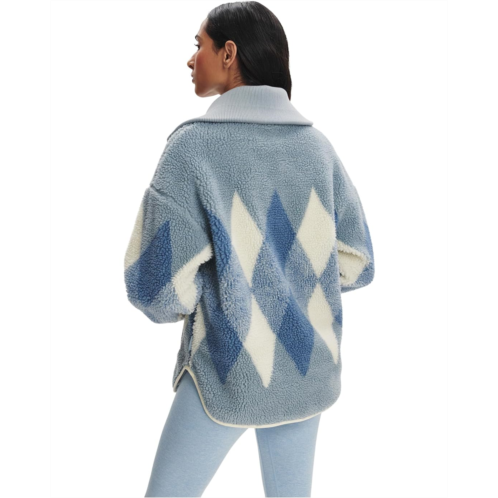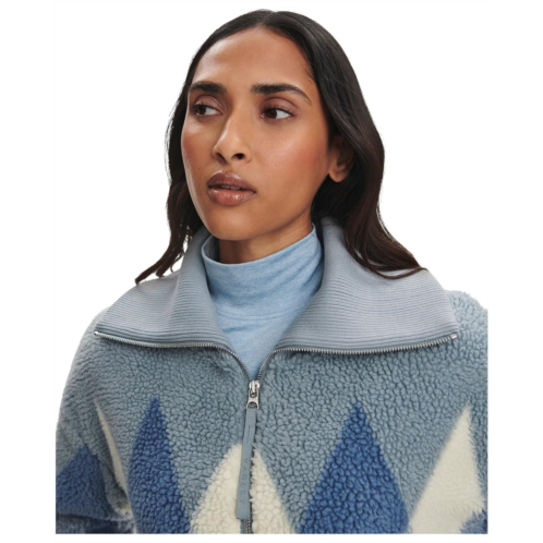 Stay cozy and stylish in the cold weather wearing the Varley Franca Sherpa Jacket. It is designed with long sleeves, an extended, ribbed collar, and a straight hem. The zippered front closure keeps the elements out, while the argyle pattern gives it a stylish twist. Made from Sherpa fabric, this zip-up jacket is ideal for styling and layering.